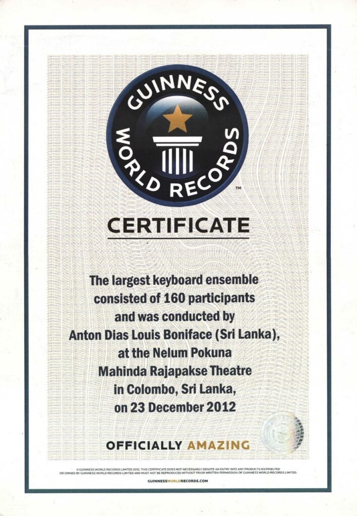 A significant milestone in our journey was achieved in 2012, when our students made history by setting a Guinness World Record for the Largest Electronic Keyboard Performance. A total of 160 students participated in this incredible event, and all performers were awarded official certificates from Guinness World Records.